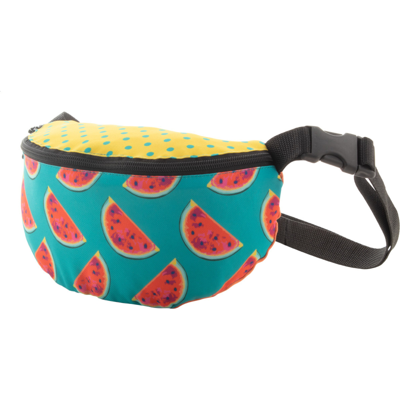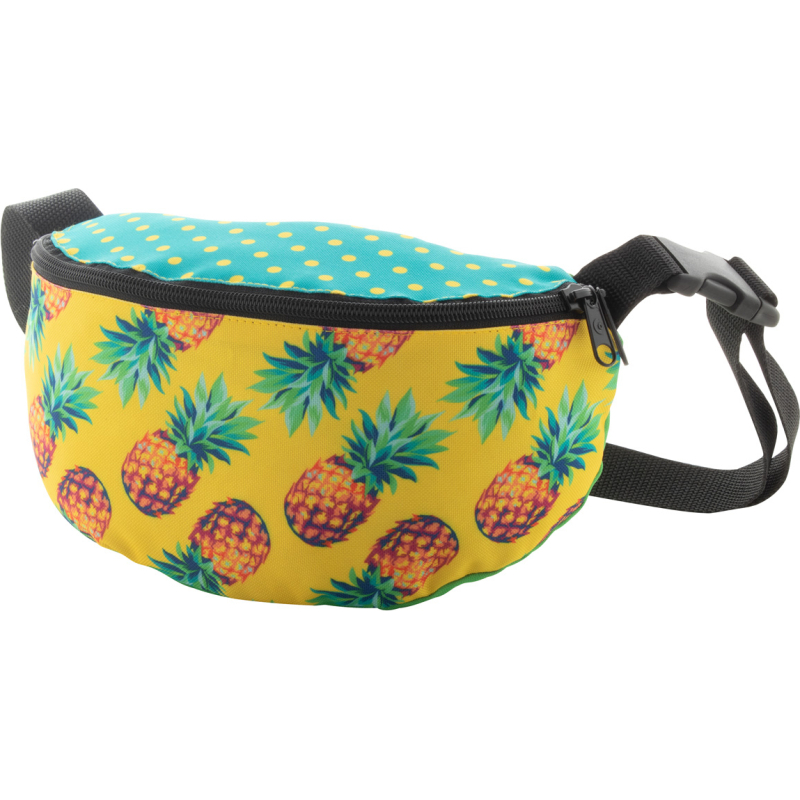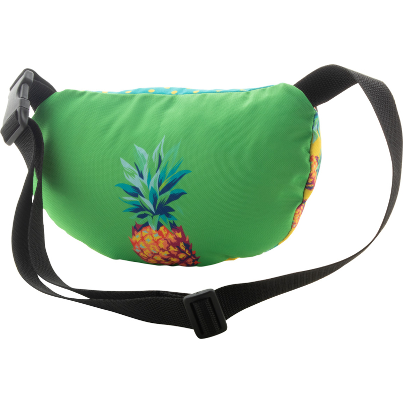 Sac banane sur mesure avec compartiment zippé, polyester 600D RPET. Impression en sublimation sur toute la surface. Labélisé RPET. Quantité minimale : 50 pièces.