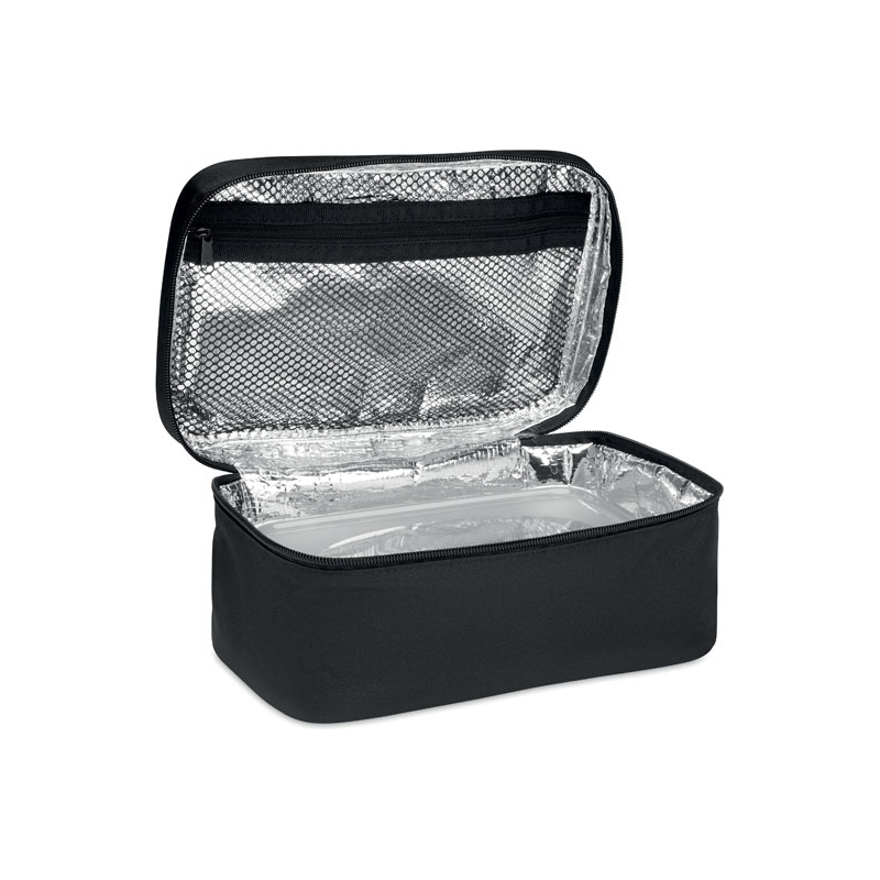 Sac isotherme en RPET 600D comprend une boîte à lunch réutilisable en PP d'une capacité de 1900ml. Feuille d'aluminium de 2 mm.