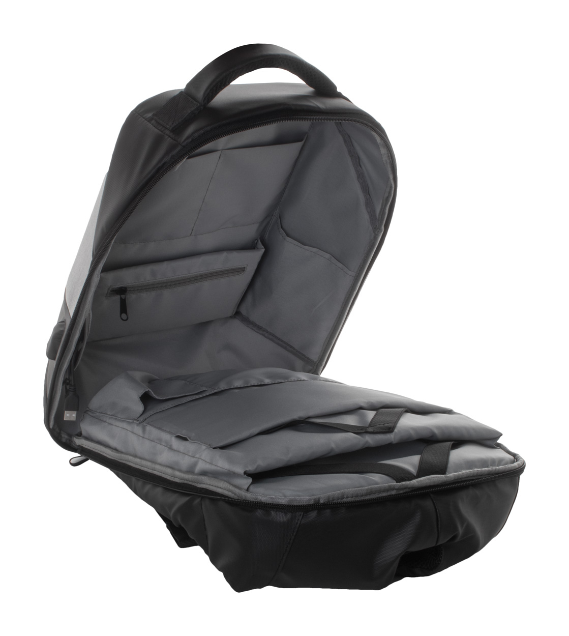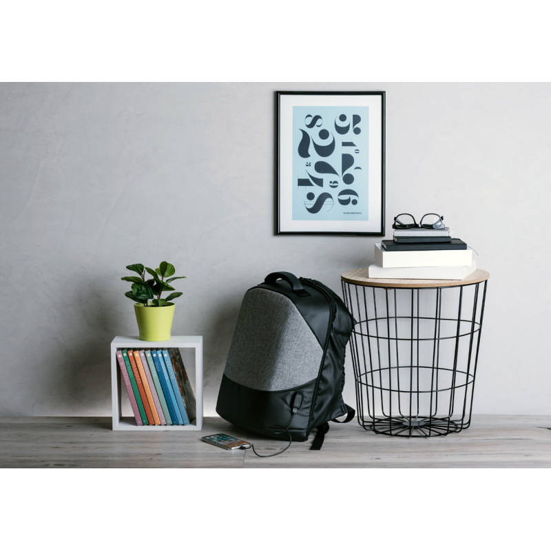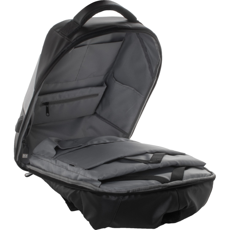 Sac à dos imperméable, anti-vol avec de multiples compartiments avec fermeture éclair, compartiments rembourrés pour ordinateur (15") et tablette (10"), avec dos rembourré et bandoulière, prise USB intégré pour connexion powerbank, Nylon 1200D.