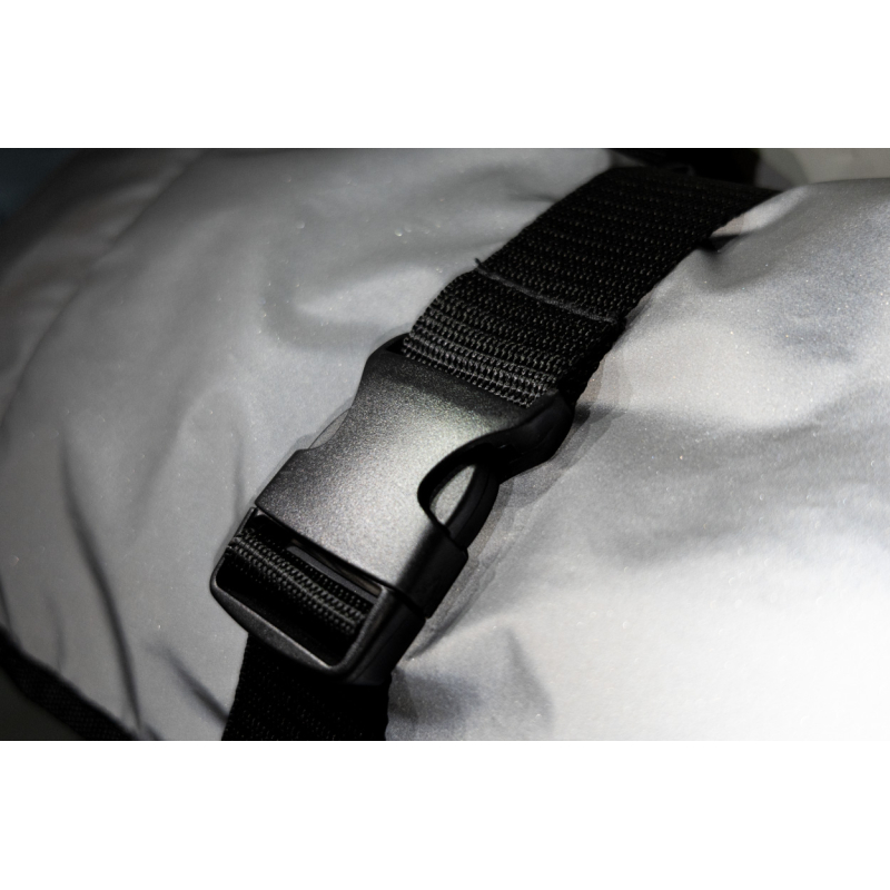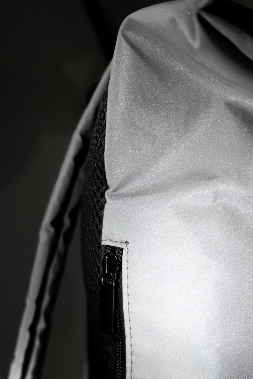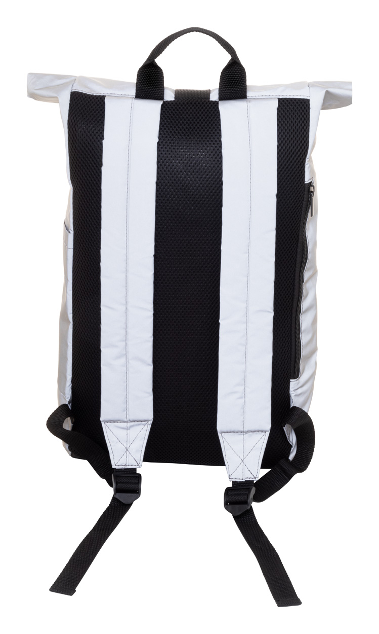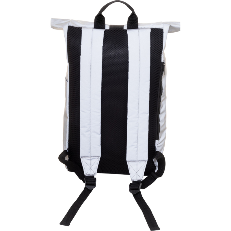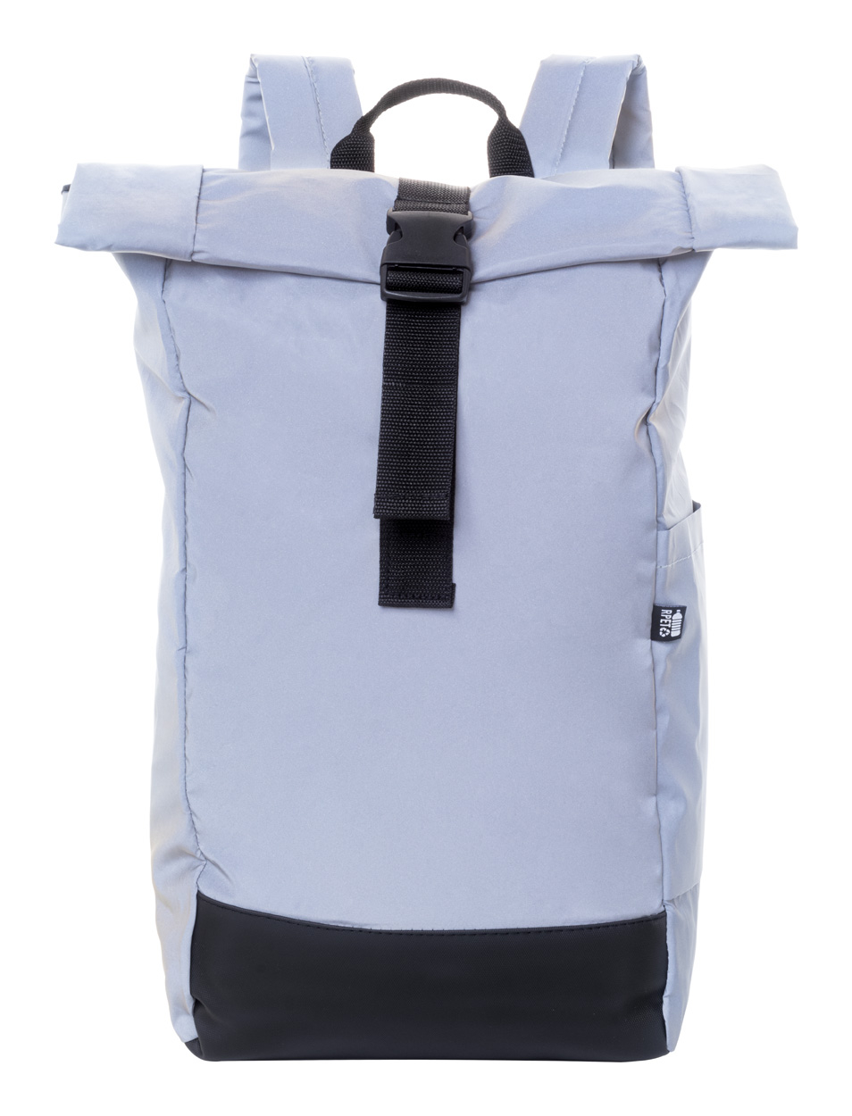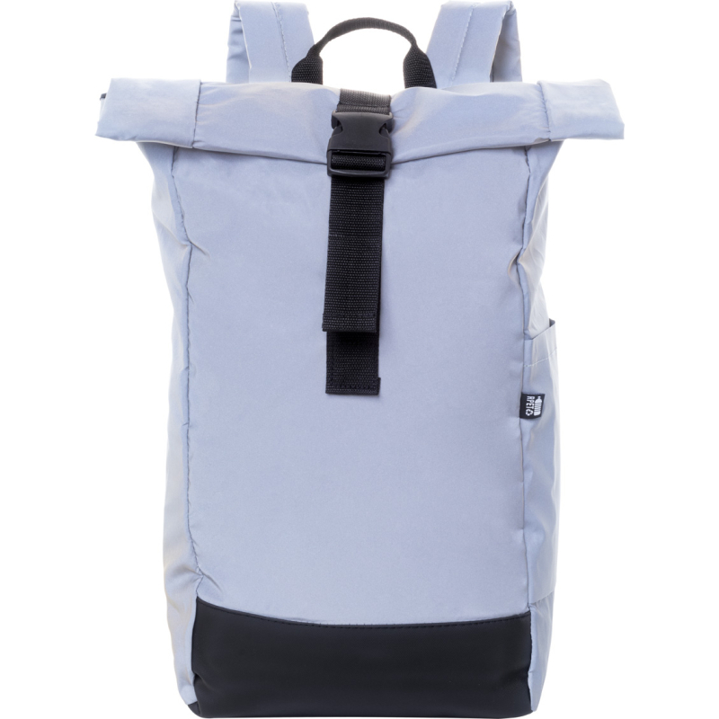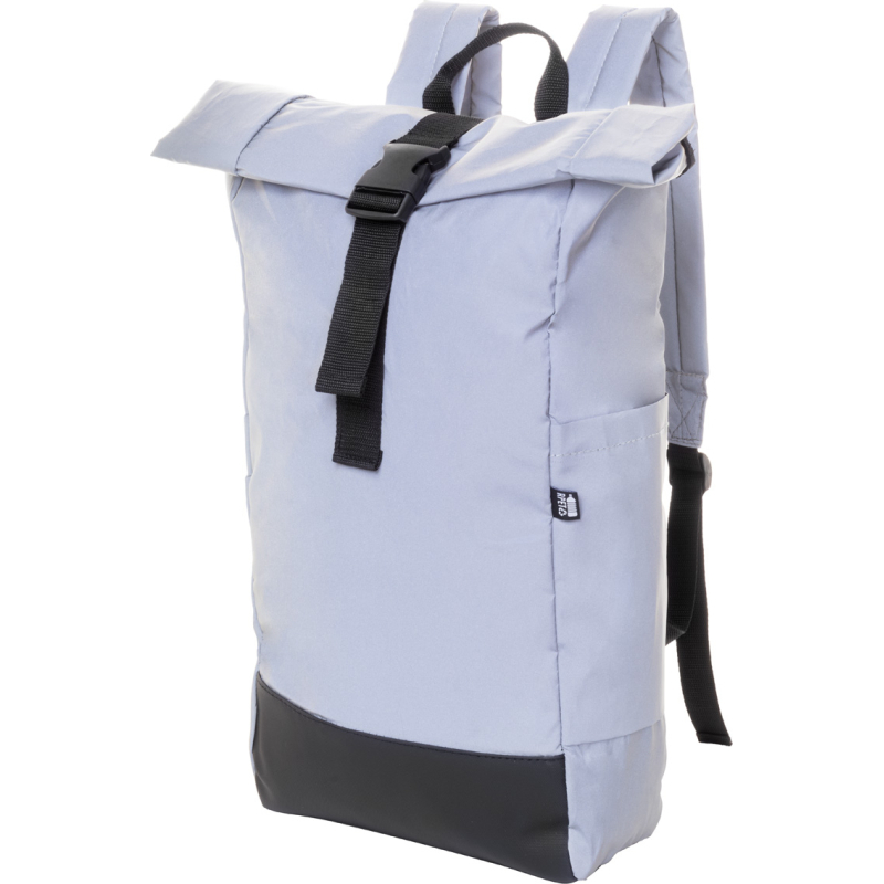 Sac à dos rolltop réfléchissant en polyester RPET avec compartiment principal à fermeture à boucle, poche zippée cachée, compartiment rembourré pour ordinateur portable (15"), poche latérale, dos et bretelles rembourrés. Labélisé RPET. Destiné à un usage promotionnel uniquement, le produit n'est pas considéré comme un équipement de protection individuelle.