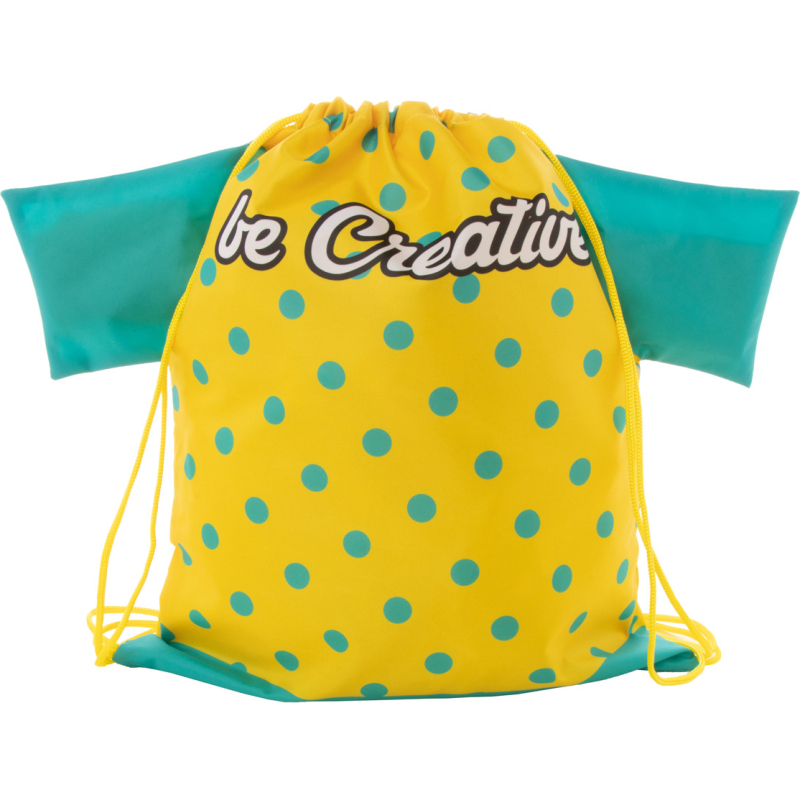 Sac piscine sur mesure en forme de T-shirt avec cordons colorés, polyester 190T. Impression en sublimation sur toute la surface. Quantité minimale : 50 pièces.