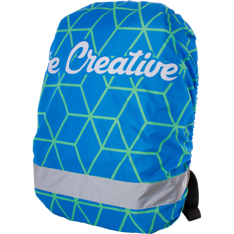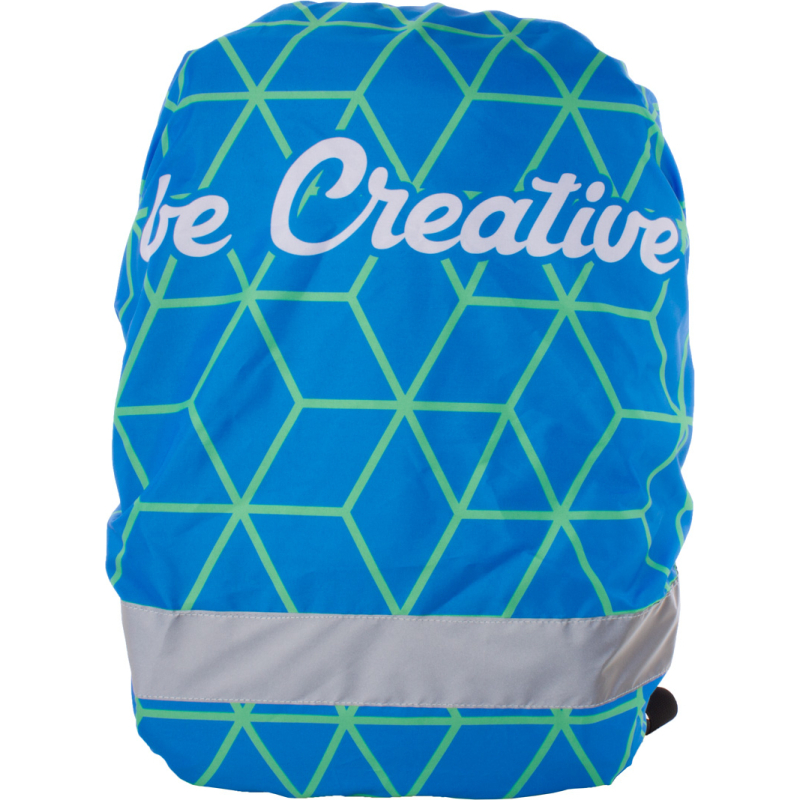 Housse en polyester RPET 190T sur mesure pour sacs à dos 10-20L, avec bande réfléchissante, bande élastique et labélisée RPET. Impression en sublimation sur toute la surface. Quantité minimale : 50 pièces.
