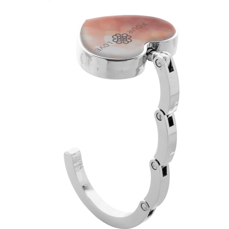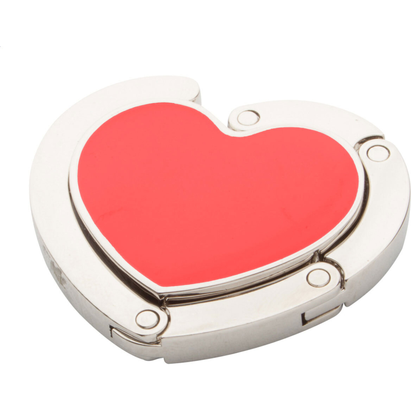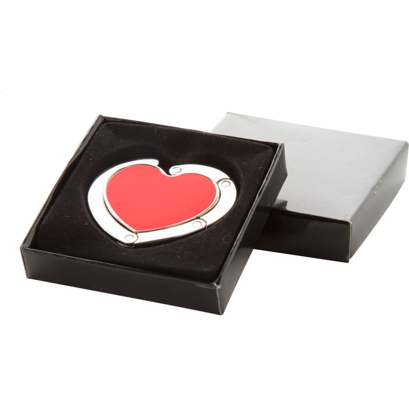 Accroche-sac en métal en forme de cœur avec fermeture magnétique. Livré dans une boîte cadeau noire.