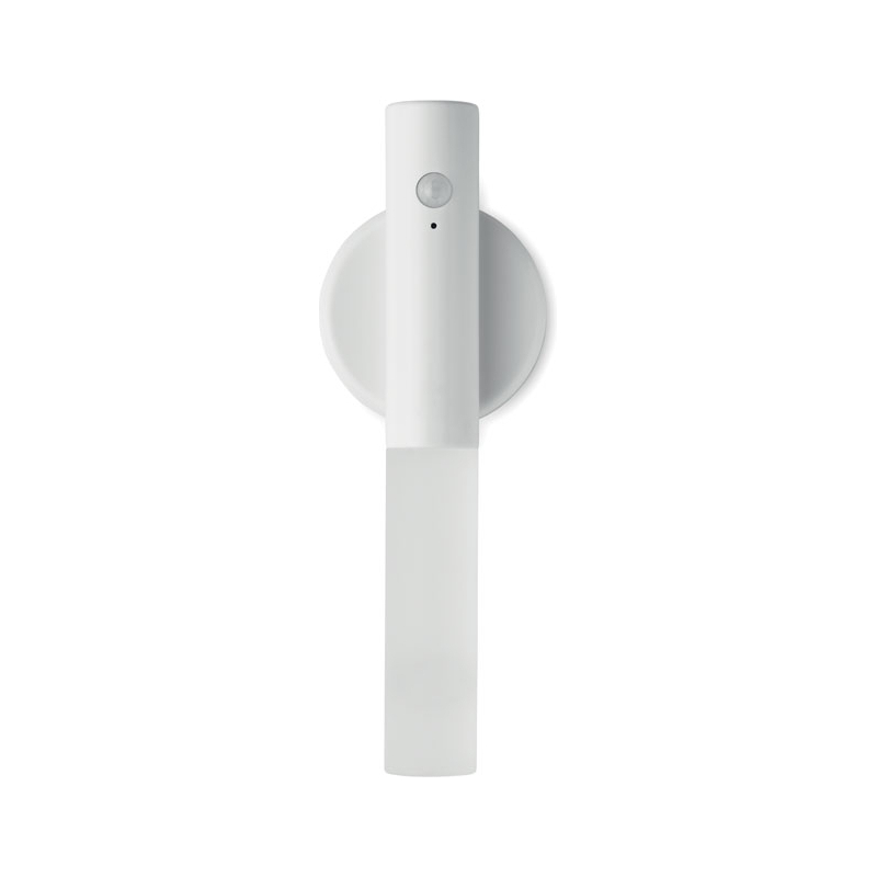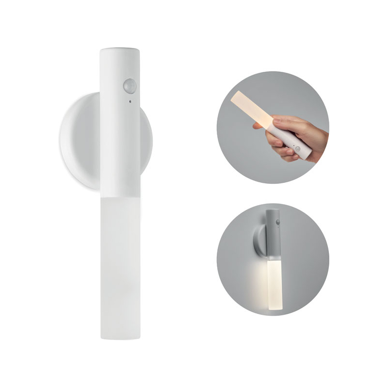 Lampe à capteur de mouvement en ABS et acrylique avec base magnétique. Batterie rechargeable de 300 mAh intégrée et câble de chargement. La base peut être fixée au mur à l'aide de l'autocollant 3M inclus.Idéal pour les placards, chambre d'enfant, couloirs...