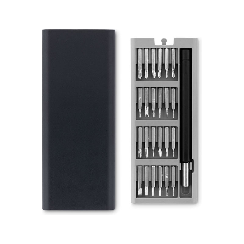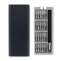 24 petits tournevis de précision pour réparation présenté dans un boîtier en ABS magnétique avec ouverture à poussoir.