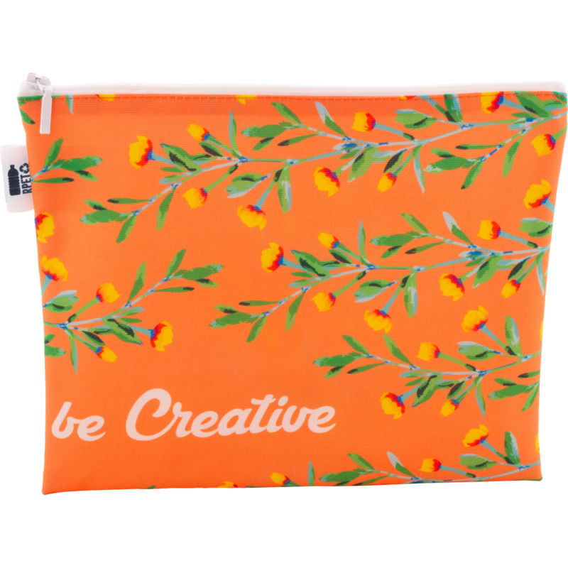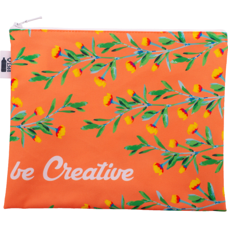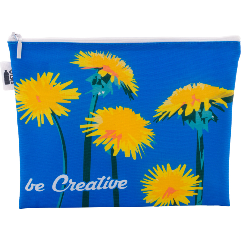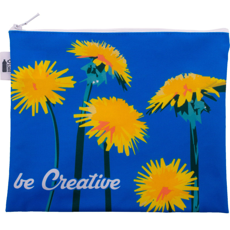 Trousse de maquillage zippée sur mesure en polyester RPET 600D. Impression en sublimation sur toute la surface. Quantité minimale: 50 pièces.