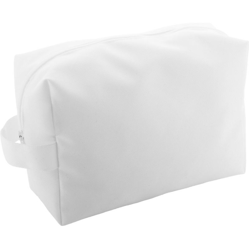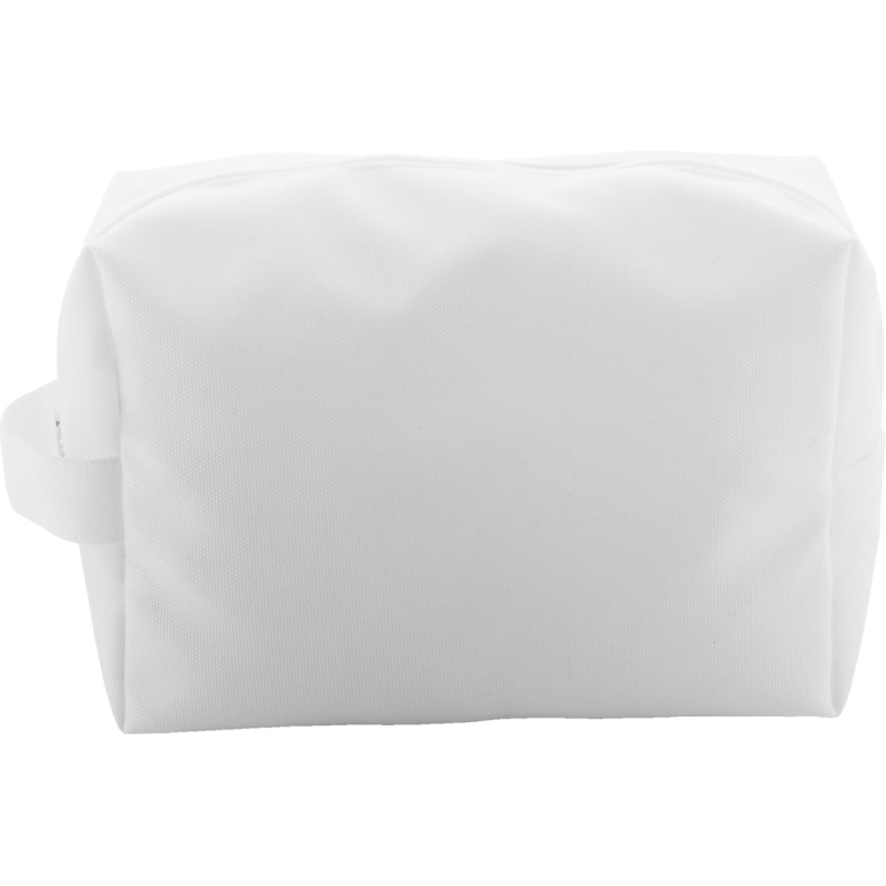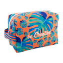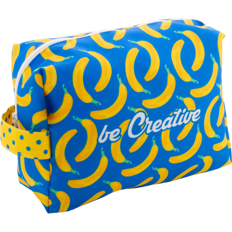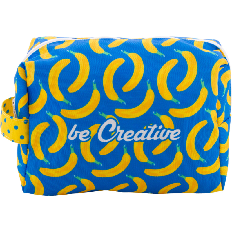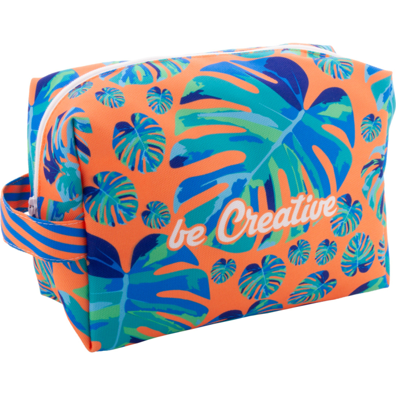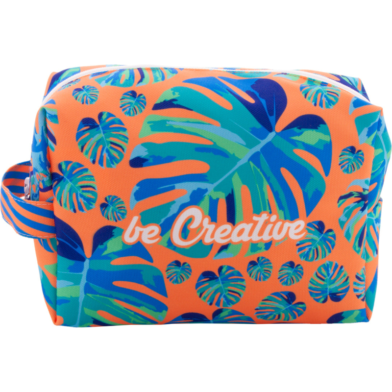 Trousse de maquillage zippée sur mesure en polyester RPET 600D avec dragonne. Impression en sublimation sur toute la surface. Quantité minimale: 50 pièces.