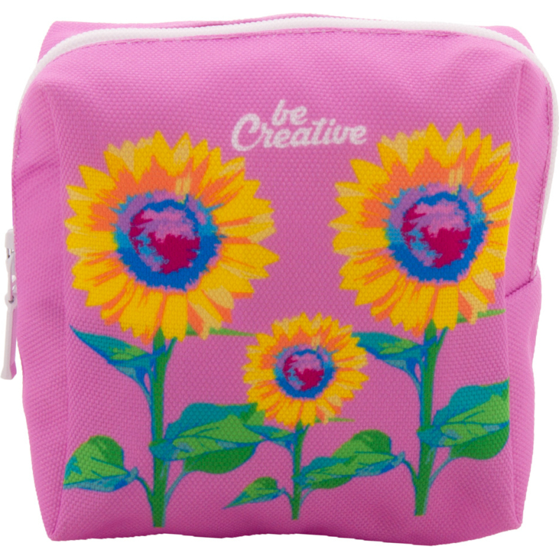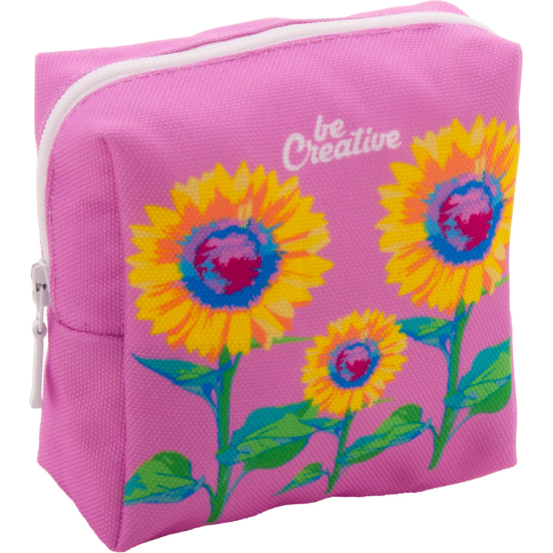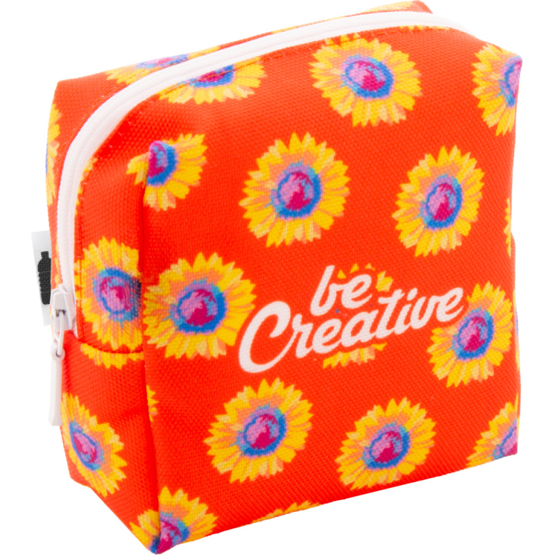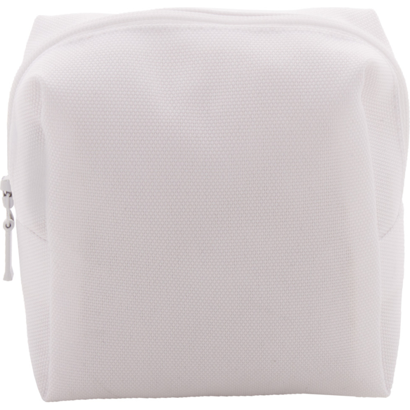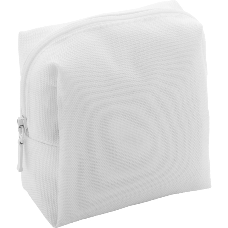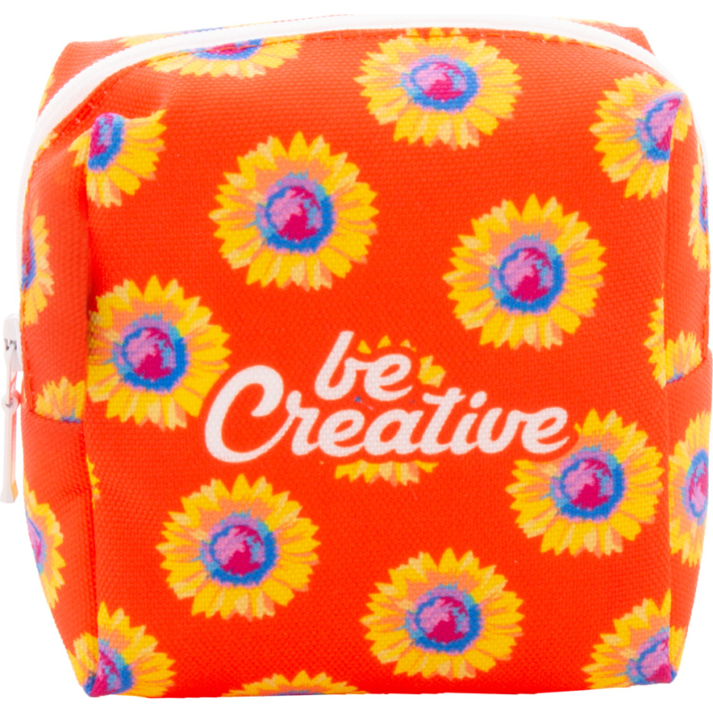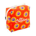 Trousse de maquillage zippée sur mesure de forme carrée en polyester RPET 600D. Impressions en sublimation sur toute la surface. Quantité minimale : 50 pièces.