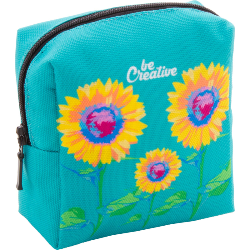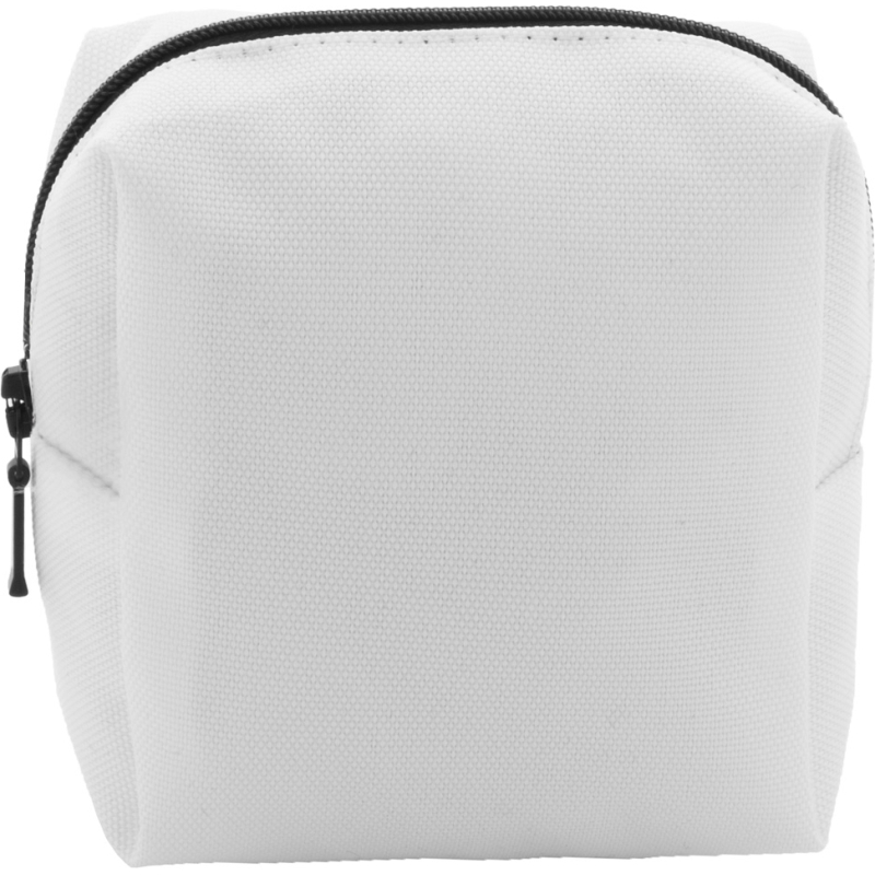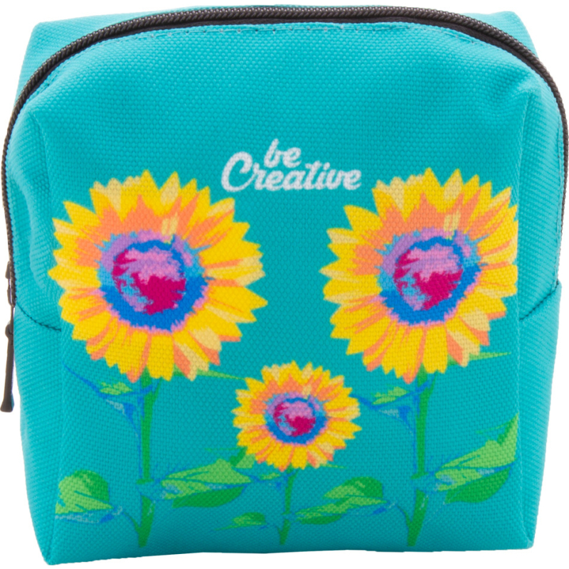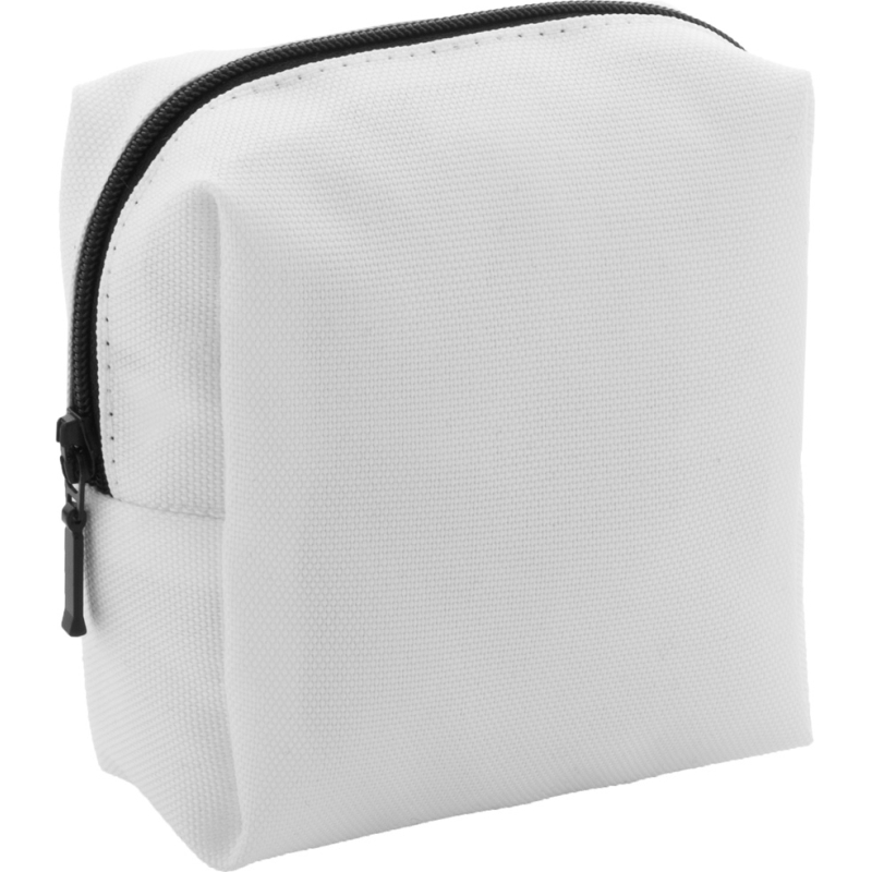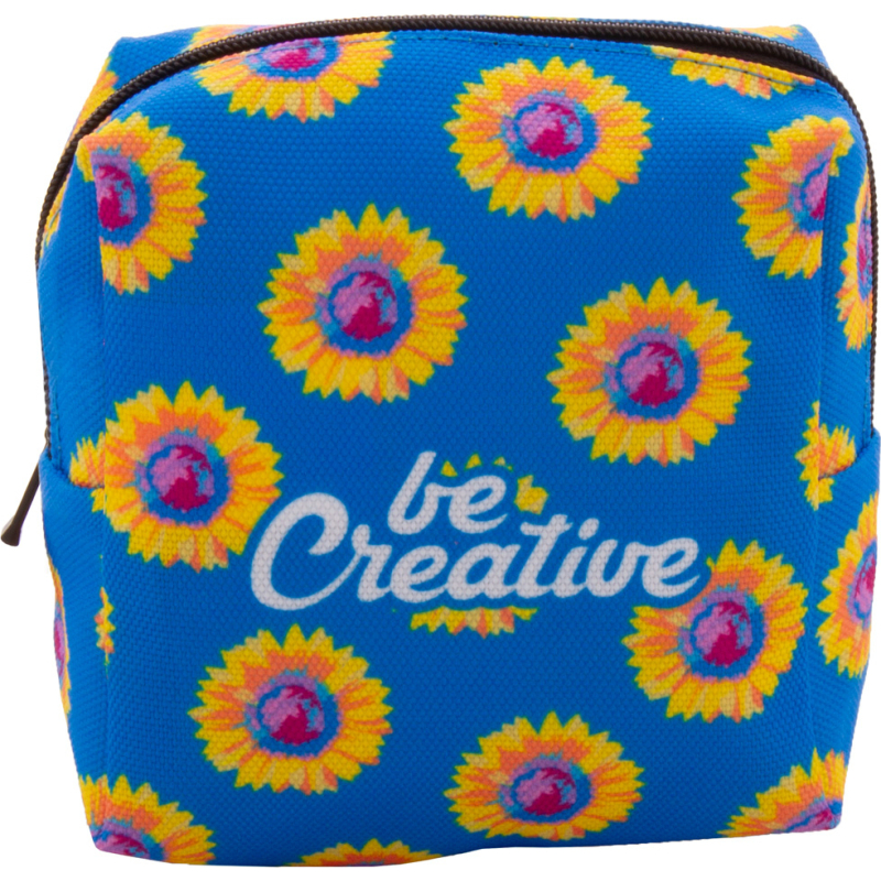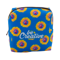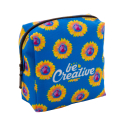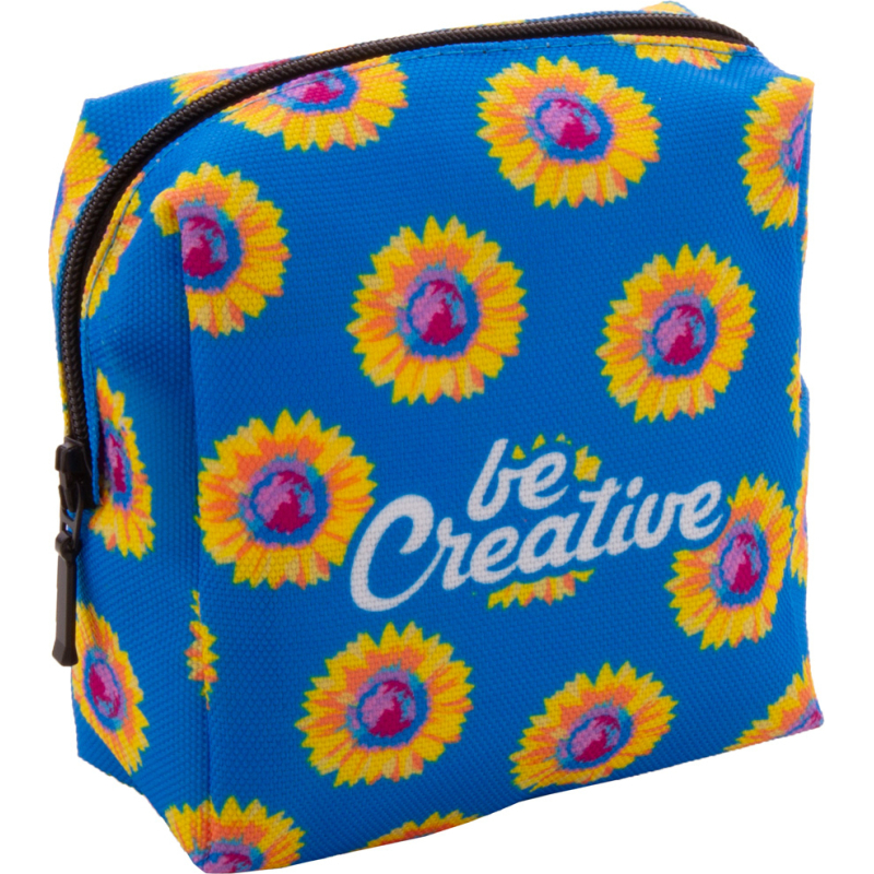 Trousse de maquillage zippée sur mesure de forme carrée en polyester RPET 600D. Impressions en sublimation sur toute la surface. Quantité minimale : 50 pièces.