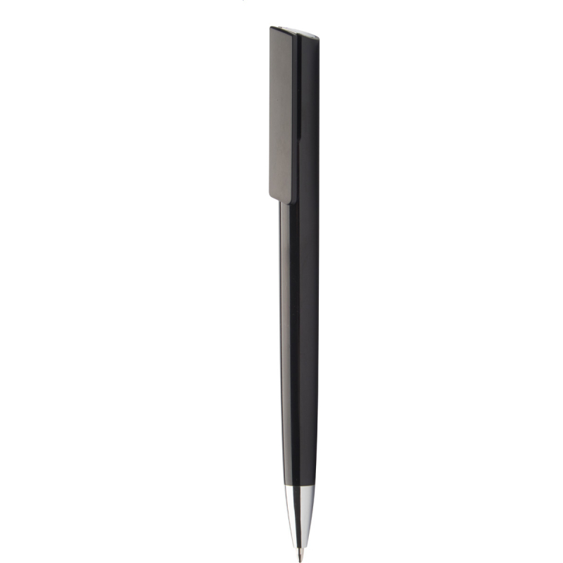 Stylo à bille en plastique avec embout chromé. Encre bleue.