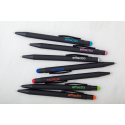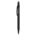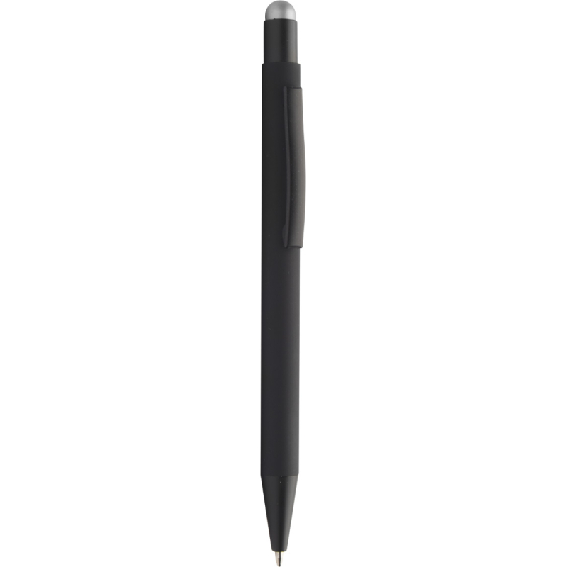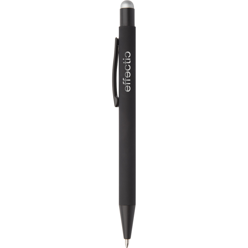 Stylo à bille stylet en aluminium avec finition caoutchoutée. Revêtement spécial pour gravure miroir assortie à la couleur du stylet. Encre bleue.
