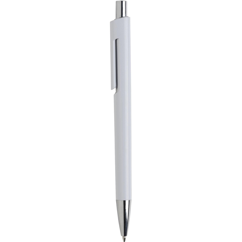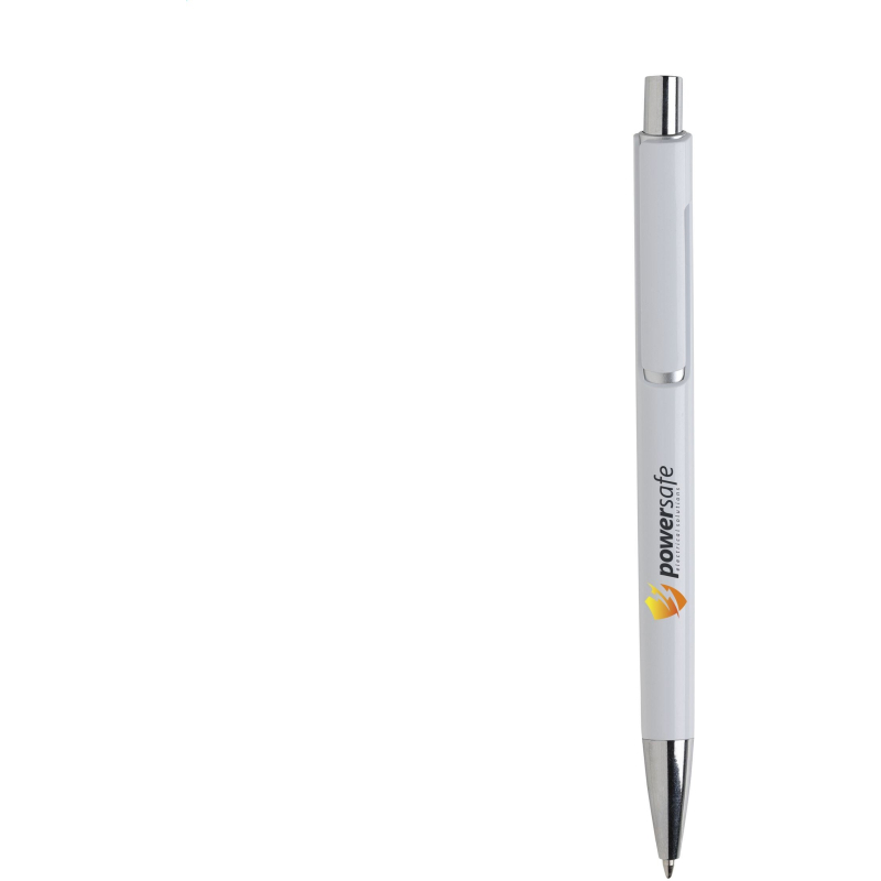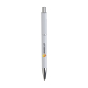 Stylo à encre bleue avec design unique : le corps et le clip ne forment qu'un, ce qui rend ce stylo spécial. Avec accents de couleur argenté en-dessous du clip à effet "flottant".