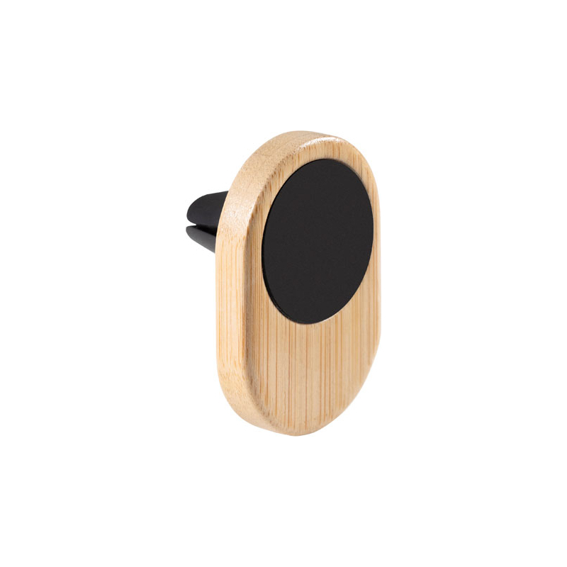 Porte-téléphone en bambou à montage magnétique pour bouche ventilation de voiture. Le bambou est un produit naturel, et présente de légères variations de couleur, de décoration et de tailles.