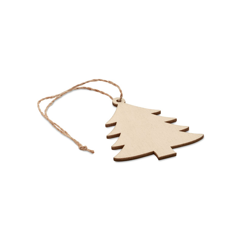 Décoration en bois forme sapin avec cordon en jute. Le MDF est un produit naturel, il peut y avoir de légères variations de couleur et de taille par article, pouvant altérer le résultat final.