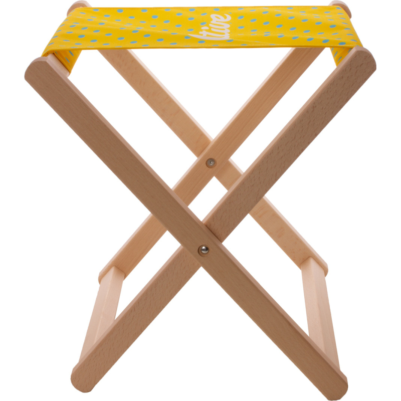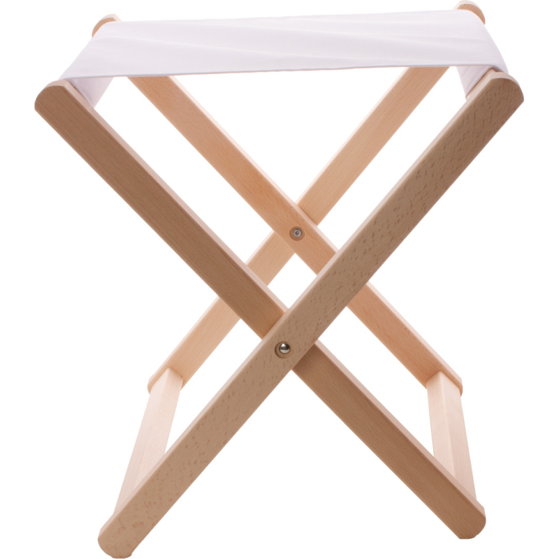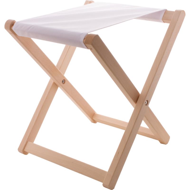 Tabouret de plage en bois avec tissu polyester RPET 600D impression en sublimation. Le prix comprend l'impression en sublimation. Poids max autorisé : 100 kg. Quantité minimale : 10 pièces.