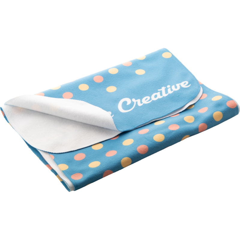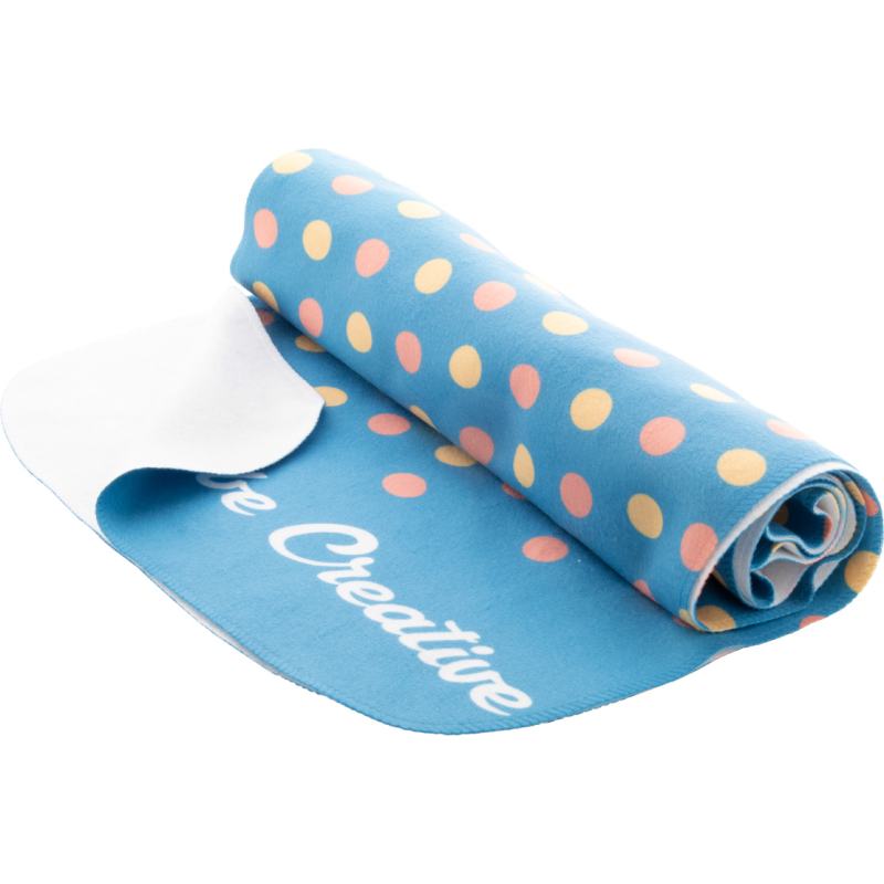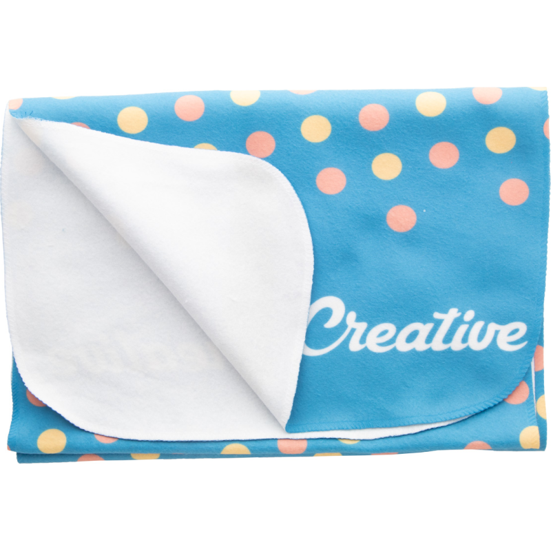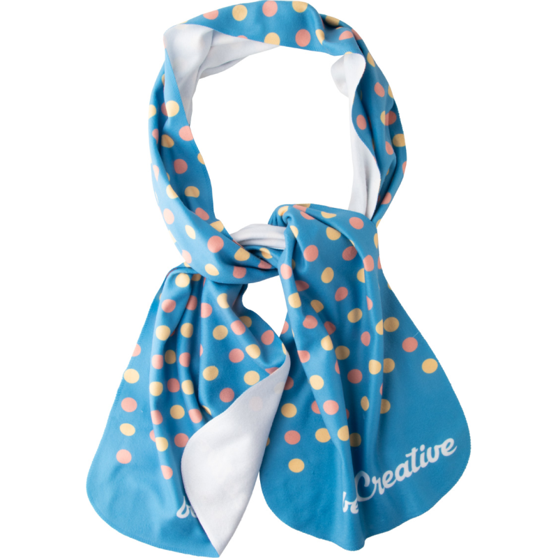 Écharpe polaire impression sublimation sur une face. 100% polyester, 250 gr/m². Le prix inclut l'impression en sublimation. Quantité minimale : 50 pcs.