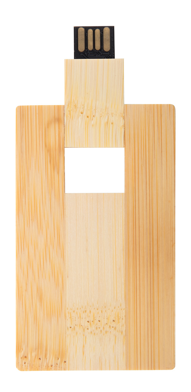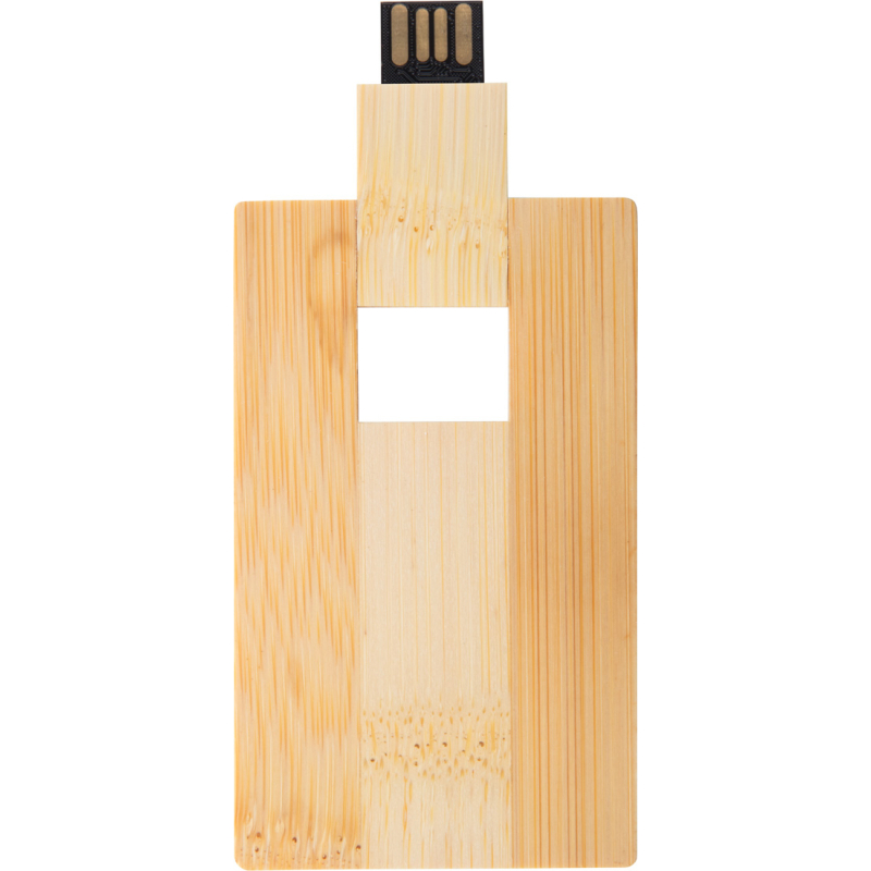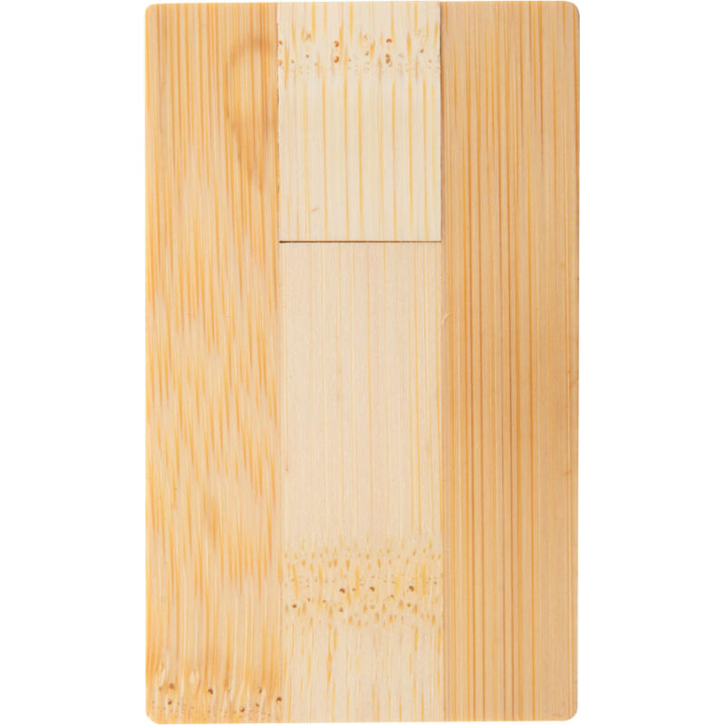 Clé USB en bambou en forme de carte de crédit. Capacité : 8/16/32GB. USB 2.0.